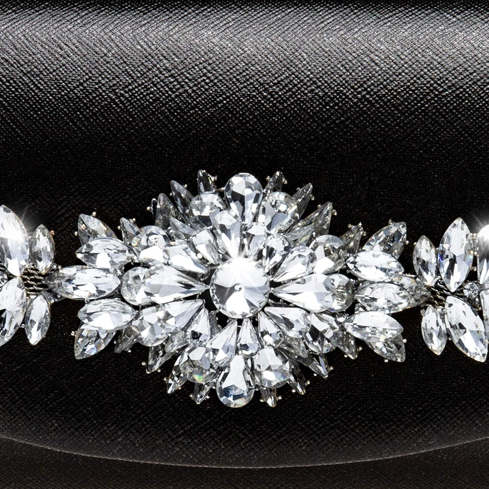 Caspar TA509 Damen Metallic Clutch Tasche mit ausgefallenem Strass Dekor Einheitsgrösse Schwarz, Ein