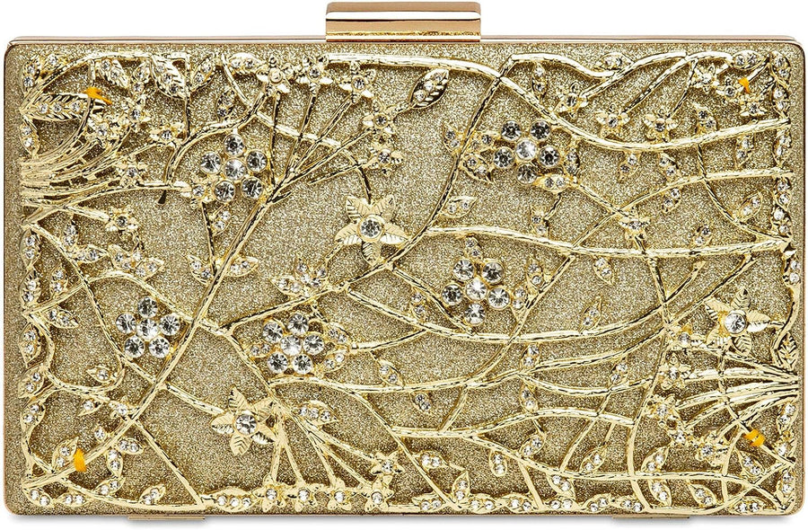Caspar TA528 aussergewöhnliche elegante Damen Box Clutch mit floralem Metalldekor Einheitsgrösse Gol