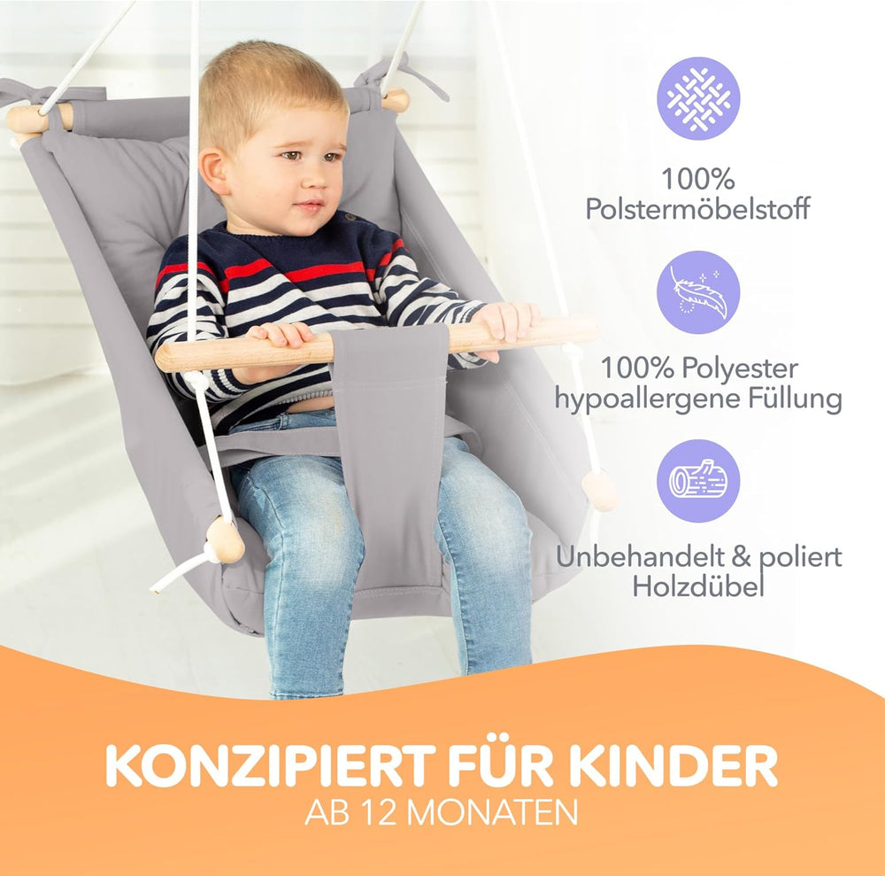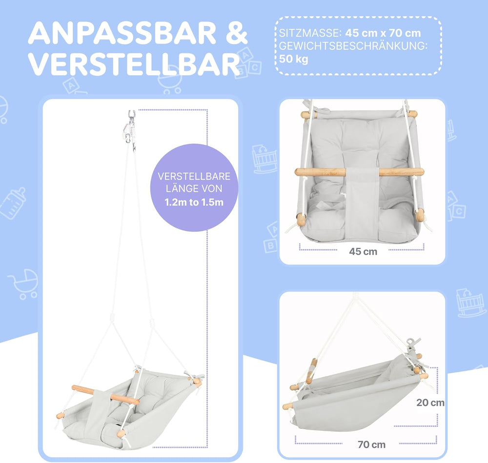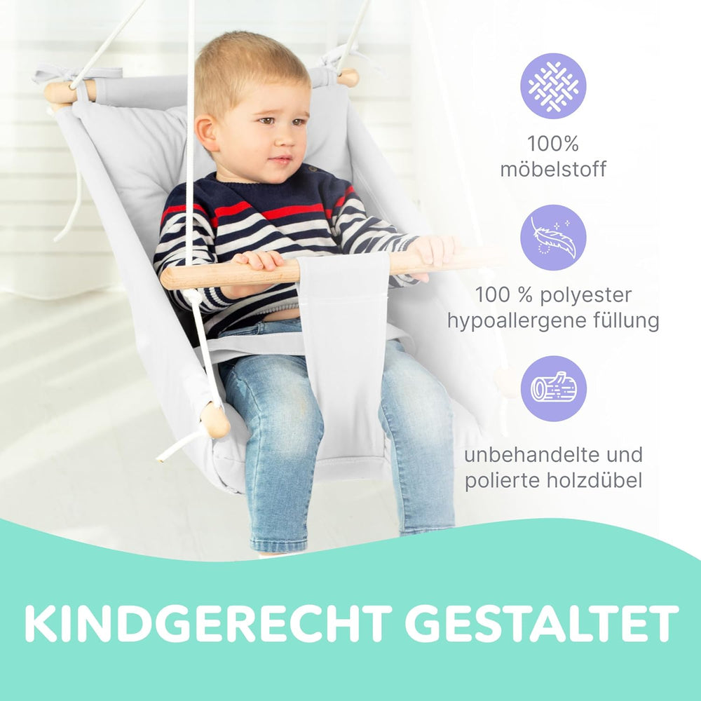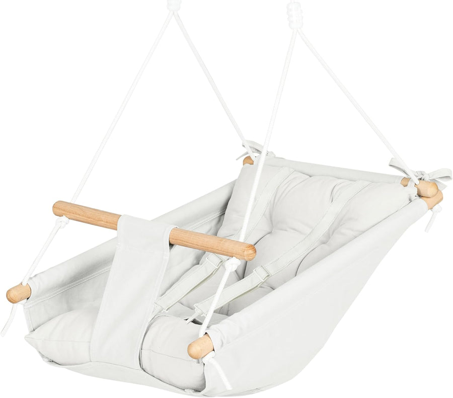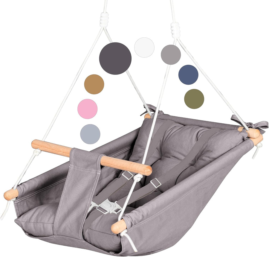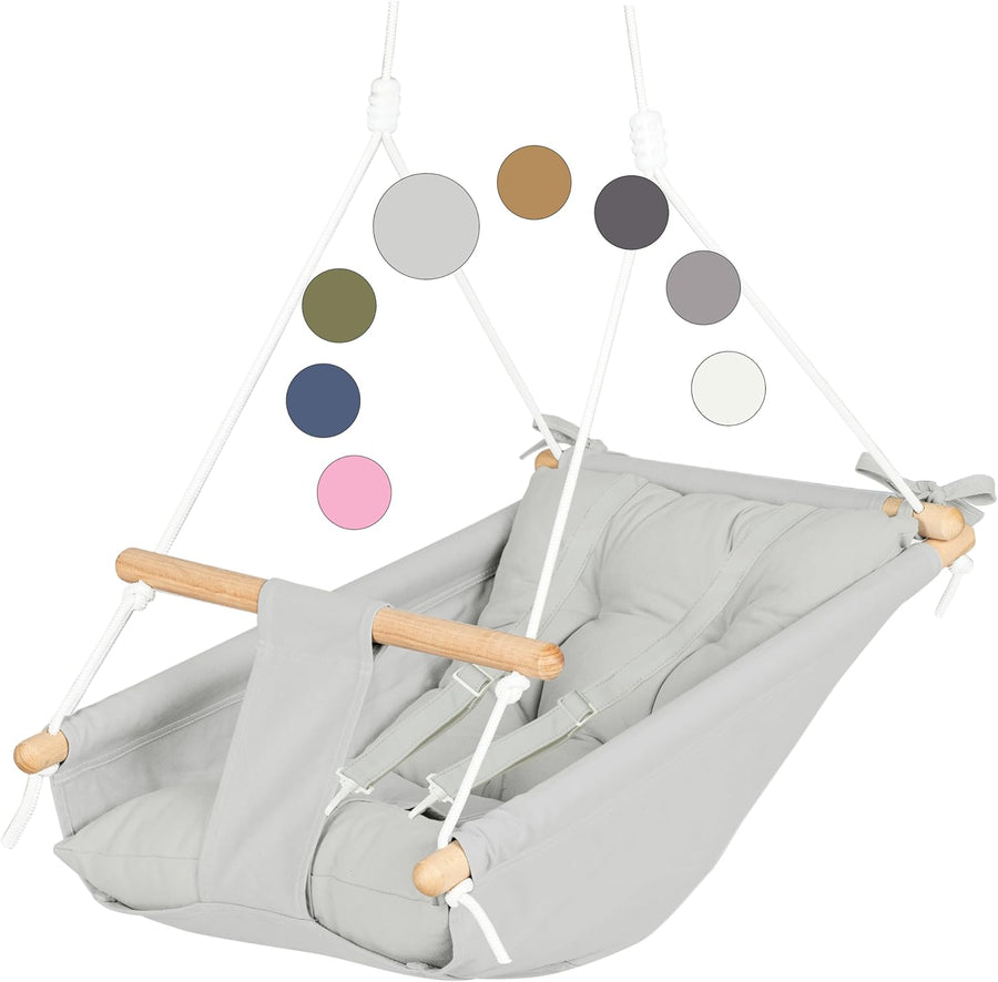 Leinwand Baby Hängematte Schaukel von Cateam - Grau - Hängende Schaukel aus Holz für Baby mit Sicher