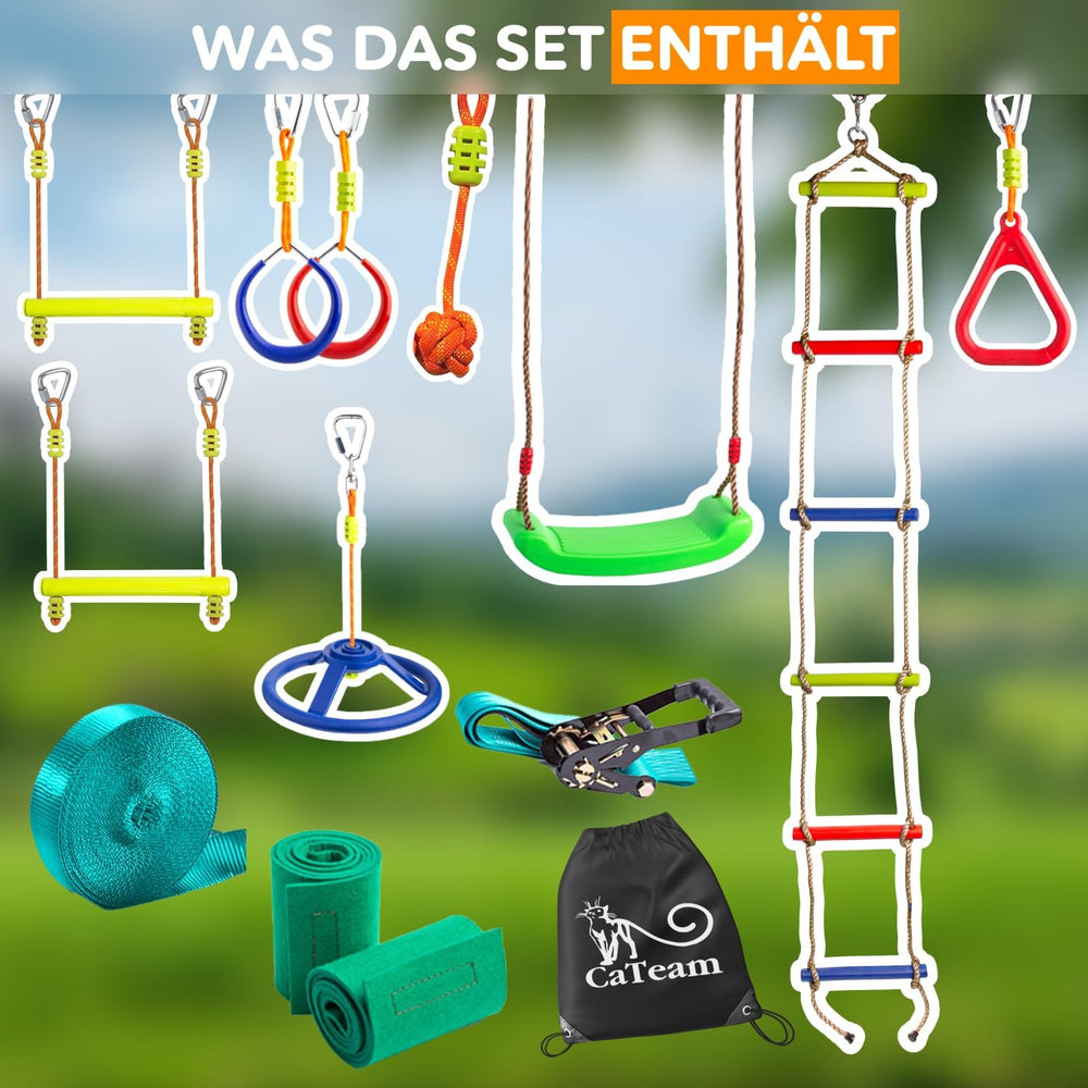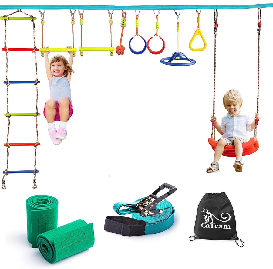 Ninja Slackline Trainingskurs – Hängendes Monkey Bar Set für Kinder mit 15 Meter Slackline, Schaukel