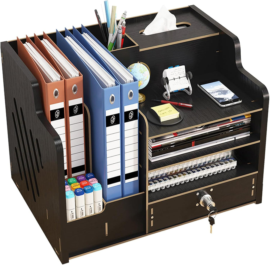 Schreibtisch Organizer aus Holz mit Schublade, Grosses Fassungsvermögen, A4 Papier Dokumentensortier