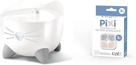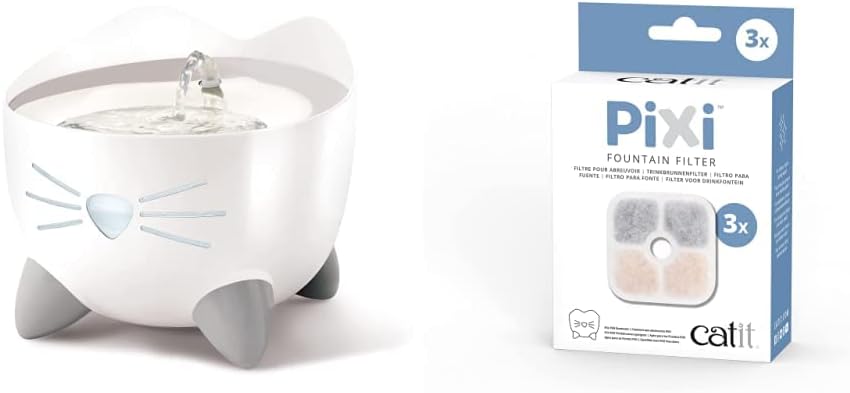 Catit Pixi Trinkbrunnen für Katzen, 2,5L, weiss + Pixi Ersatzfilter, Trinkbrunnenfilter für die Cati