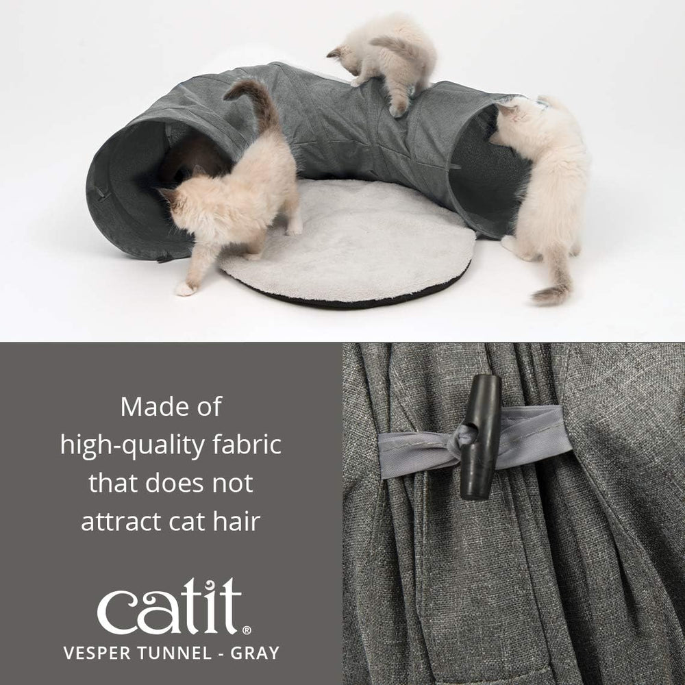 Catit 41996 Vesper Tunnel, für Katzen, mit Schlafkissen, grau , Black, Black