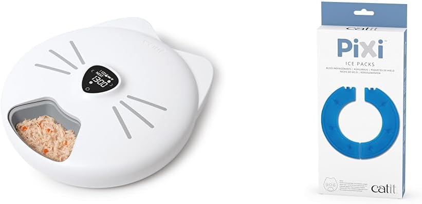 Catit - PIXI Smart Futterautomat mit 6 Mahlzeiten (Nassfutter) + CA Pixi Kühlakku f. 6-Meal Feeder,