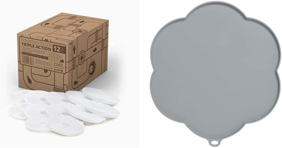Catit Triple Action Filter, 3fach wirksamer Ersatzfilter, Trinkbrunnenfilter, 12er Pack & Silikonmat