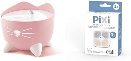 Catit Pixi Trinkbrunnen für Katzen, 2,5L, pink & 43721 Pixi Ersatzfilter, Trinkbrunnenfilter für die