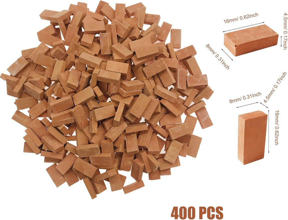 Cayway 400 Stück Mini Simulation Ziegel, 1:16 Mini Scale Ziegel Miniatur Ziegelsteine Ziegelrot Back