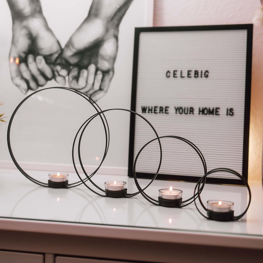 CeleBig® Kerzenständer 4er Set | Teelichthalter Schwarz | Kerzenständer Schwarz | Kerzenhalter mit W