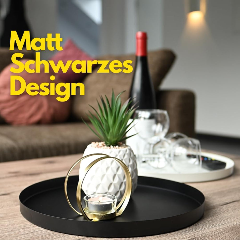 CeleBig® Deko Tablett Rund ø30cm | Dekoteller und Dekotablett aus Metall Schwarz | Serviertablett Ma