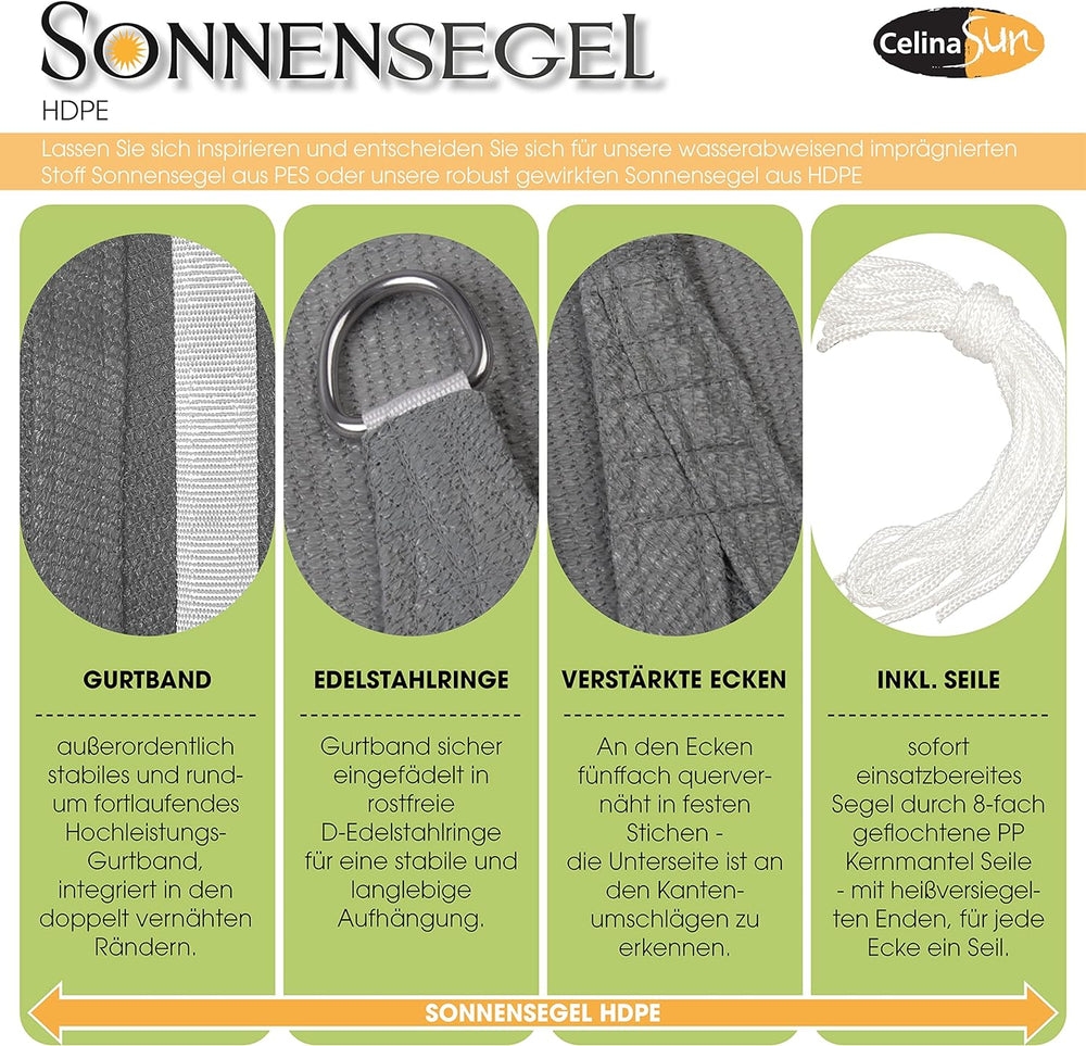 CelinaSun Sonnensegel inkl Befestigungsseile Premium PES Polyester wasserabweisend imprägniert Recht