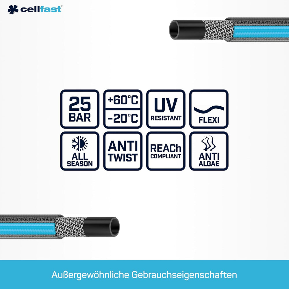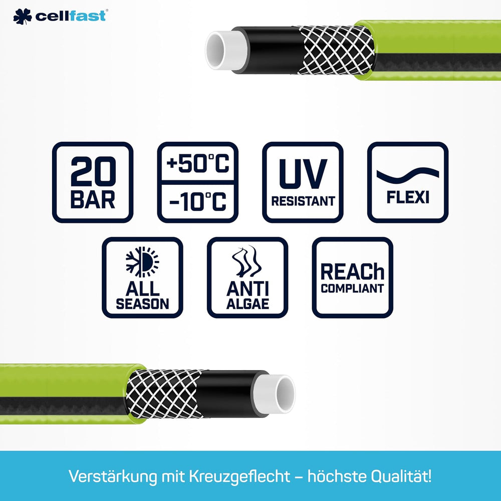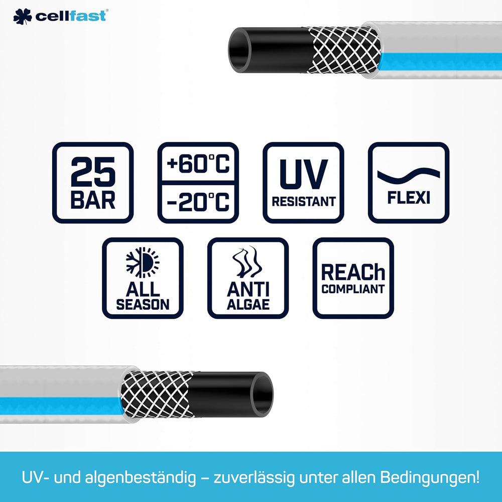 Cellfast Gartenschlauch MULTIFLEX PRO, Strapazierfähig, 6-lagig, Trikotgeflecht ATS2, UV und Algenbe