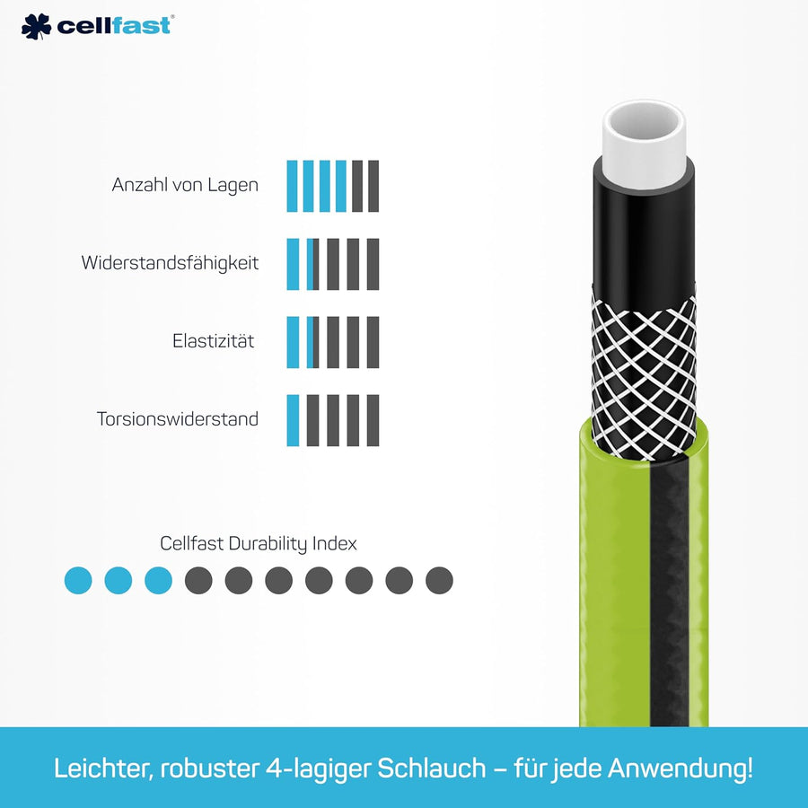 Cellfast Gartenschlauch Quattro Formstabiler, Flexibel 4-lagiger Schlauch aus hochwertigem Garn - Kr