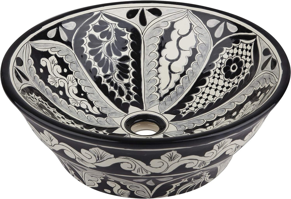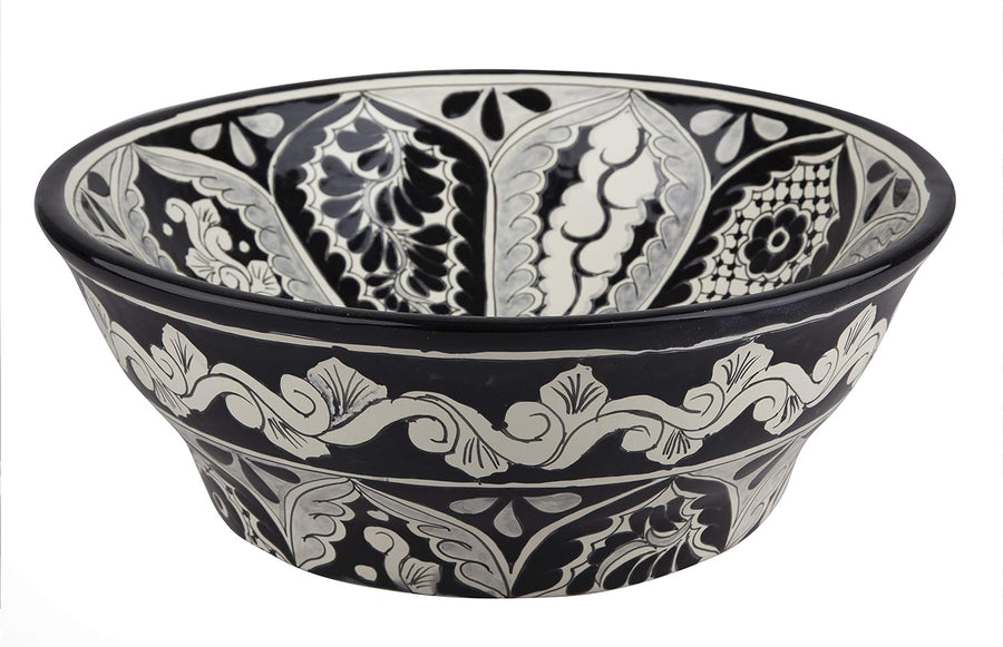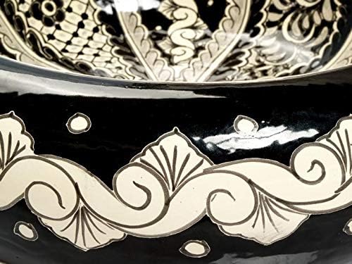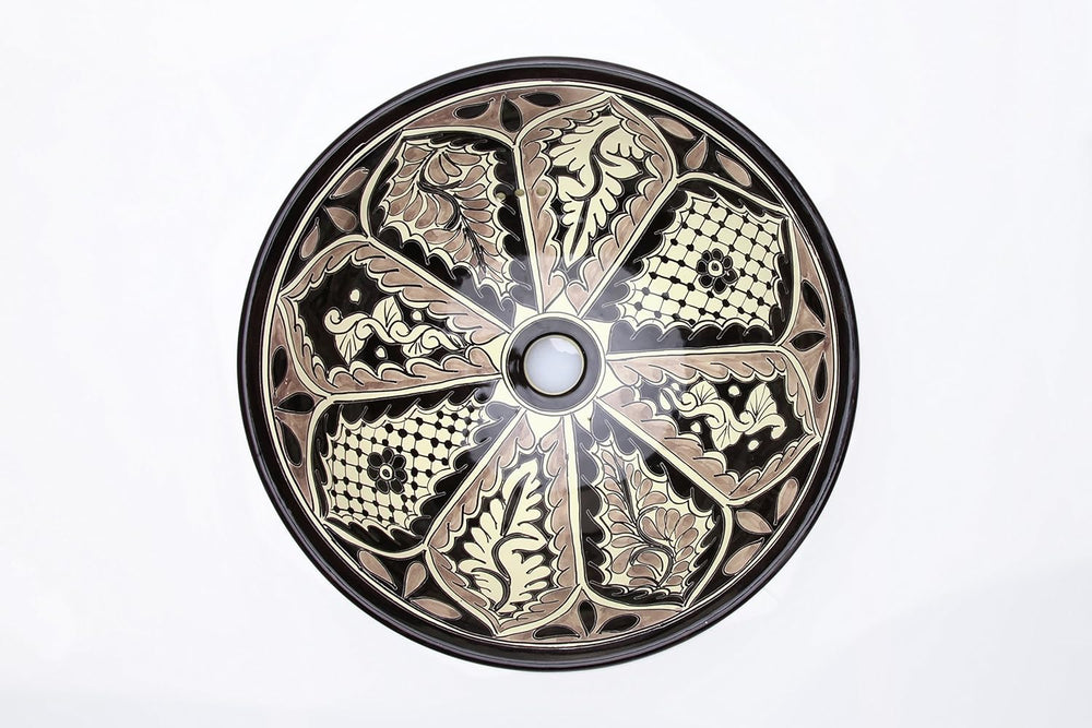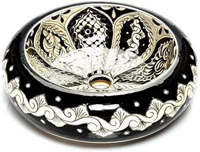 Cerames Serena - Mexikanische Rund Aufsatzwaschbecken schwarz | 40 cm Keramik Talavera klein Waschbe