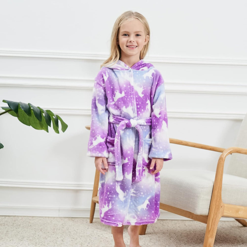 Ceruwum Einhorn Bademantel für Mädchen Weich Fleece Morgenmäntel mit Kapuze, Lila Sterne
