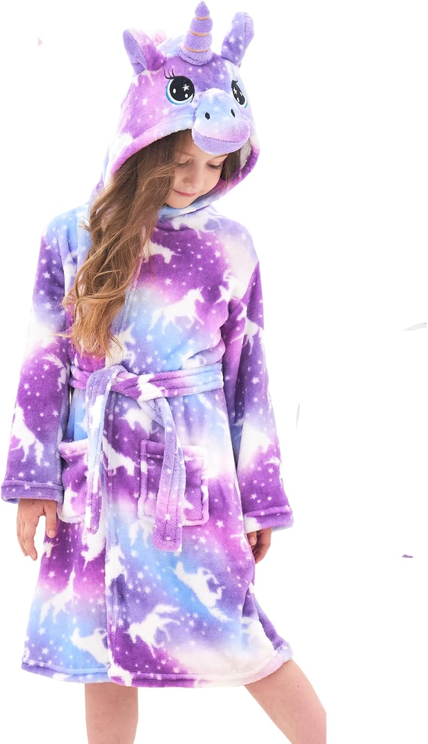 Ceruwum Einhorn Bademantel für Mädchen Weich Fleece Morgenmäntel mit Kapuze 10-11 Jahre Rosa/Lila/Bl