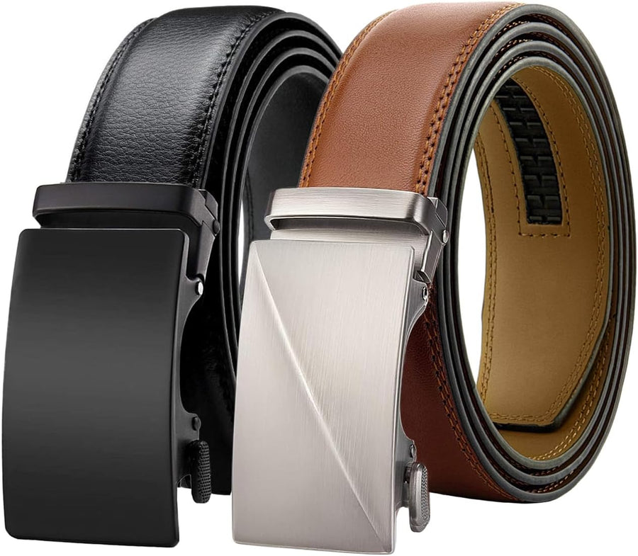 Chaberlu Automatik gürtel herren 2 Stücke, Ledergürtel Ratsche Automatikschliesse Business Anzug Gür
