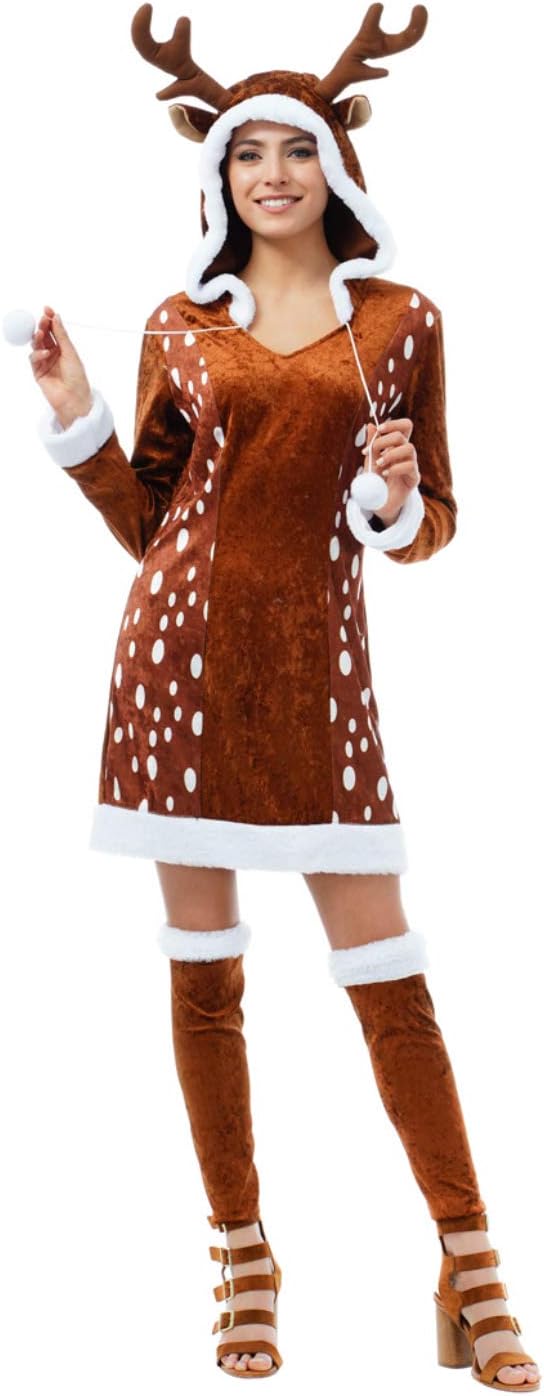 Chaks Damen Kostüm REH Sophie Kleid braun Verkleidung Waldbewohner Fasching Karneval (XS), XS