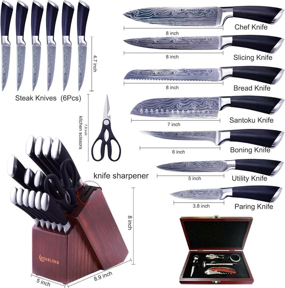 Chefhoablorn 15-TLG Messerblock Set, Scharfe Kochmesser aus Edelstahl Profi Küchenmesser für Housewa