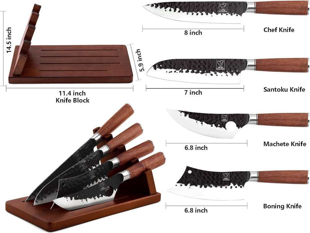 Magnetisches Messerblock-Set Kitchen Messerset 4PCS Deutsche Edelstahl-Küchenmesser gehämmerte Schmi