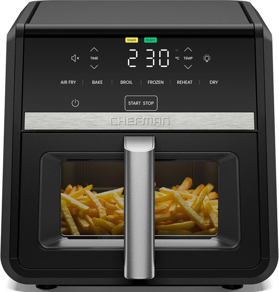 Chefman Heissluftfritteuse TurboFry, 8,5 l, 6-in-1-Hochleistungsgerät, 230 °C, XL-Korb mit Sichtfens