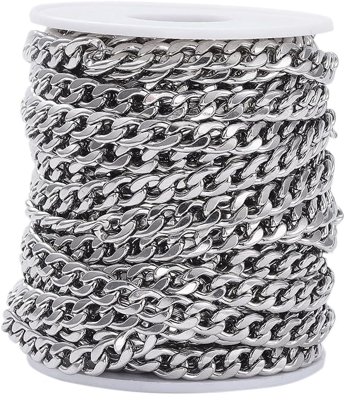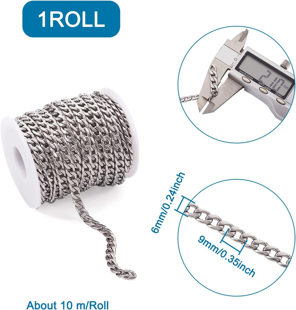 Cheriswelry Flache Panzerketten, kubanische Ketten, 6 mm, Edelstahl, Punk, Miami, kubanische Kette,