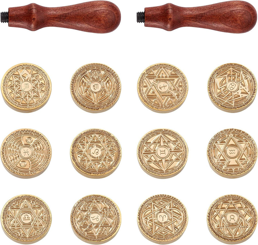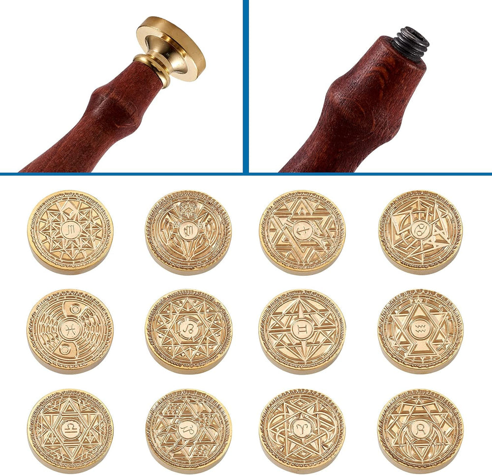 Cheriswelry Siegelstempel-Set mit 12 Sternbildern, Vintage-Sternzeichen, Wachs-Siegelstempel mit Hol