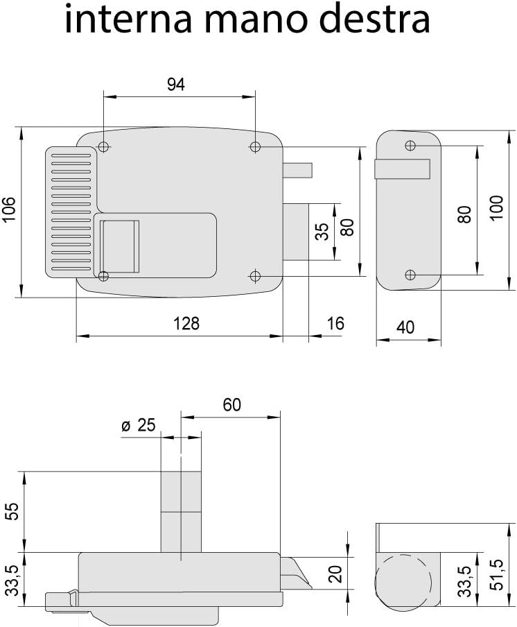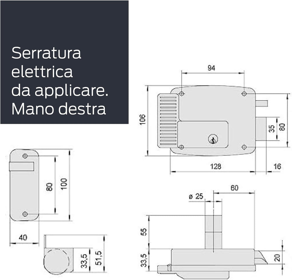 Cisa 11520 – 30 Elektrisches Schloss für Tore 11611, Eingang rechts, 60 mm Entrata 60 Rechte Hand, E