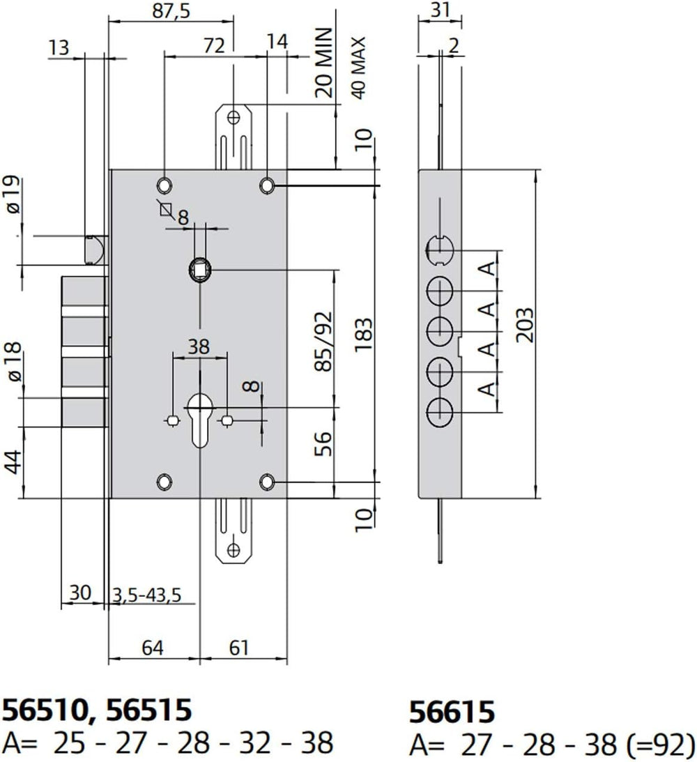 Cisa 11540–40 Elektrische Lock für Gate 12011, Entry 40 mm
