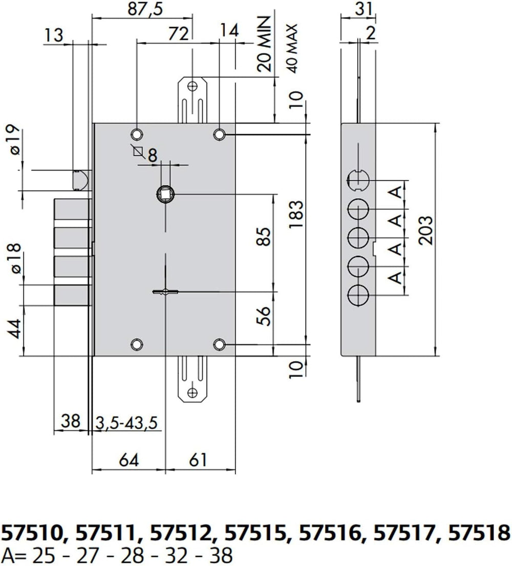 Cisa 11510–40 Elektrische Lock für Gate 11761, in, links, 60 mm