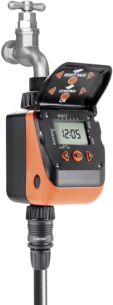 Claber D84130000 Aquauno Wasserzeitschaltuhr, bis zu 6 Bewässerungszyklen pro Tag