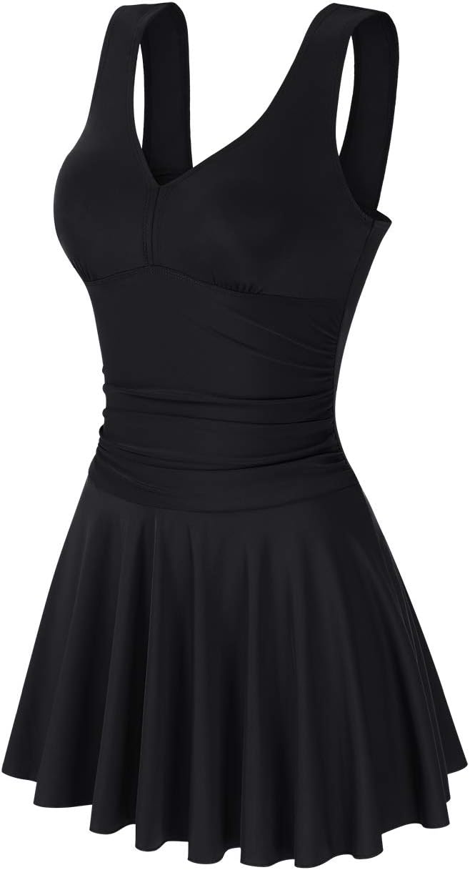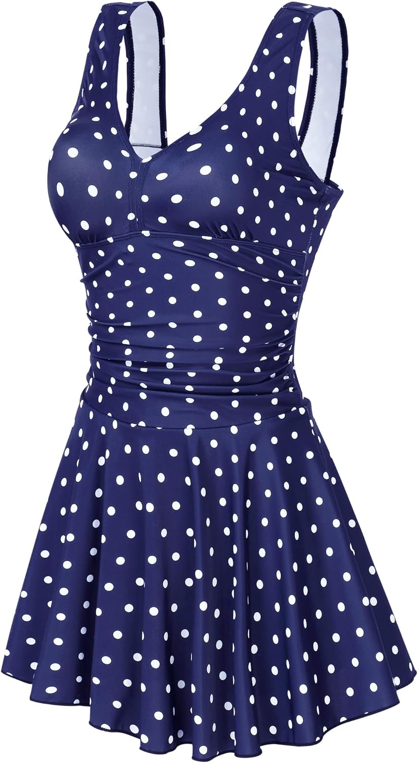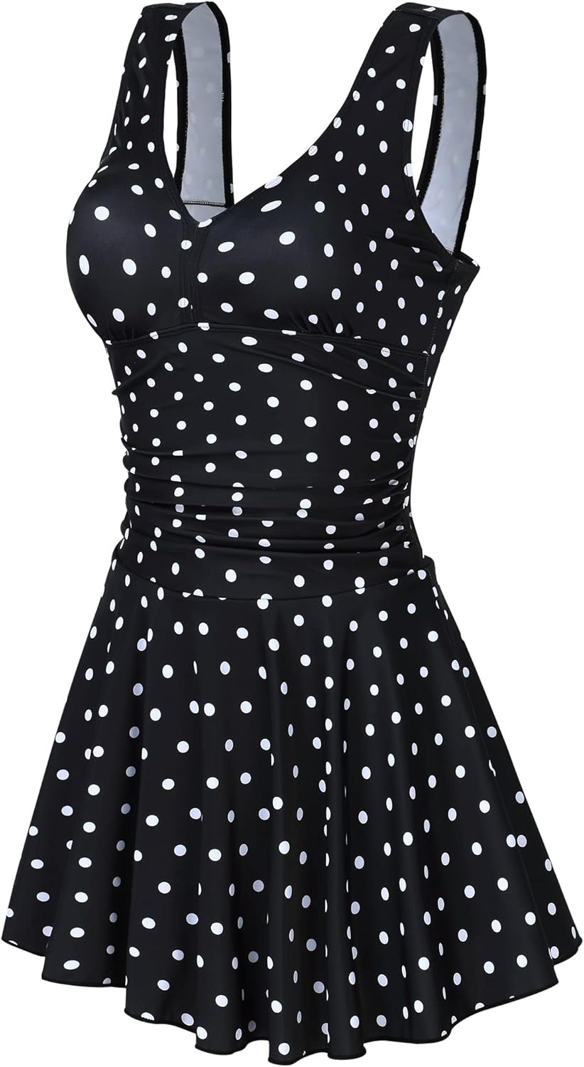 Clearlove Damen Badeanzug Einteiler Schwimmanzug Rüschen Retro Strandmode Einfarbig Bademode Bikini(