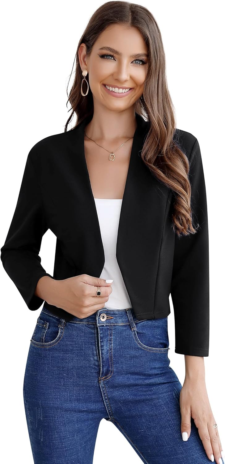 Clearlove Damen Blazer 3/4 Ärmel Elegant Blazerjacke Einfarbig Slim Business Blazer Sportlich Jack S