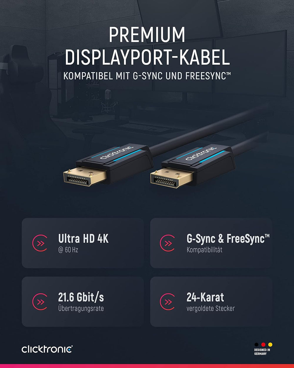 Clicktronic Casual DisplayPort-Kabel Audio / Video Verbindung für HD- und 3D-Inhalte, 3m, 3m