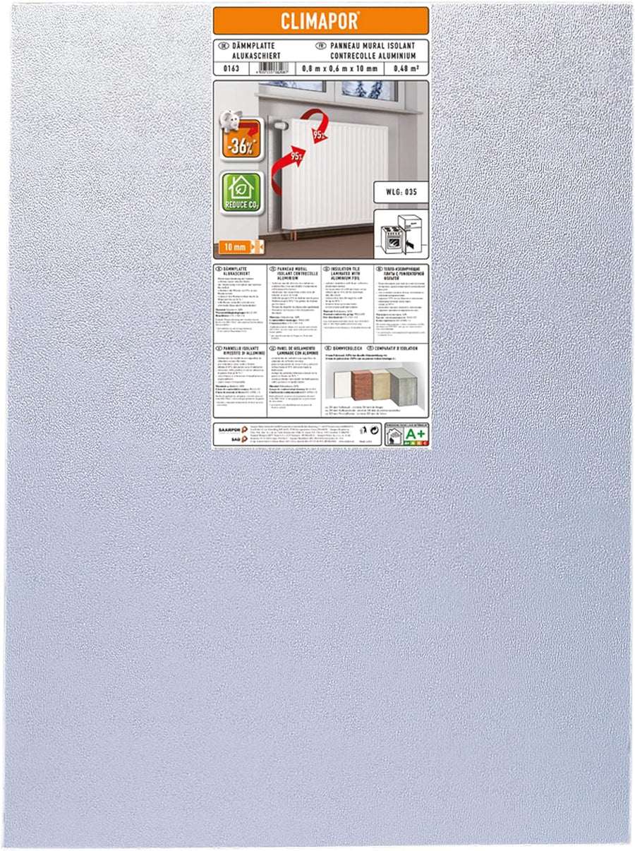 CLIMAPOR Dämmplatte alukaschiert, Hitze-Kälte-Stop, 0,8 m x 0,6 m x 10 mm, 12 Platten (ca. 5,76