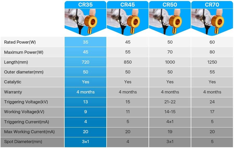 Cloudray CO2 Laser Tube Laserröhre 35W 40W 45W CO2 Glasröhre 720mm Länge & 50mm DM für CO2 Lasergrav