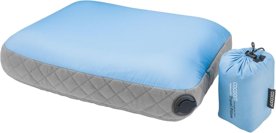 COCOON Air-Core Hood Camp Pillow - aufblasbares Camping- und Reisekissen, Farbe:light blue - hellbla