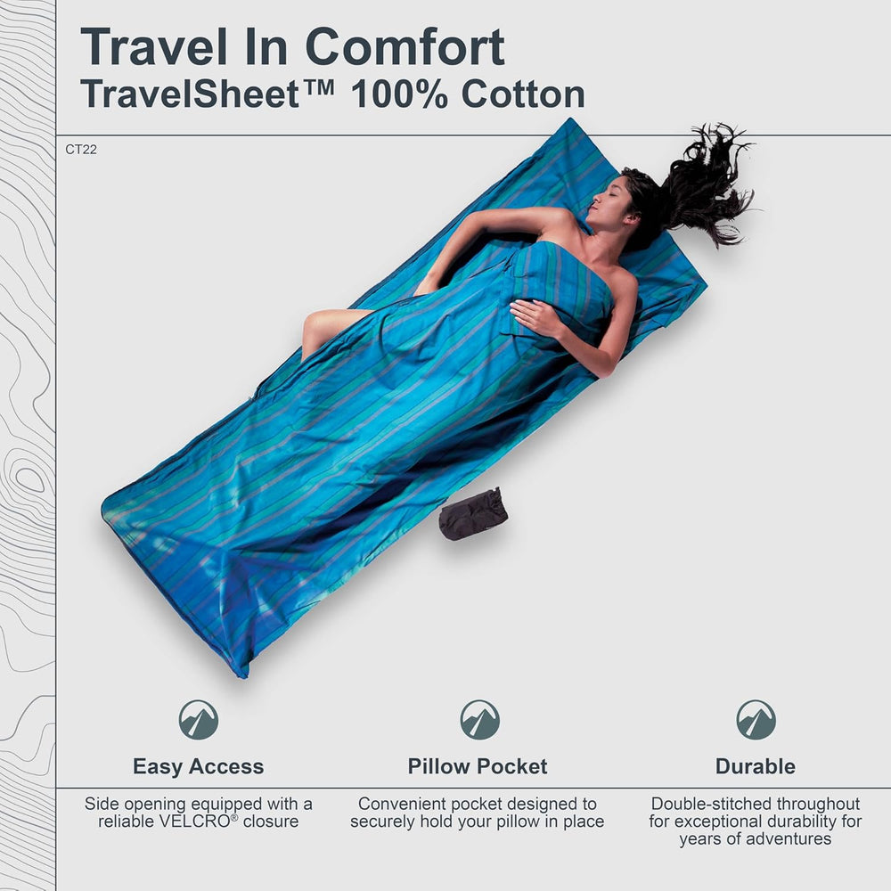 Cocoon Baumwollschlafsack Travel Sheet - Egyptian Cotton Blau (Tuareg) 220 x 90 cm, Blau (Tuareg) 22