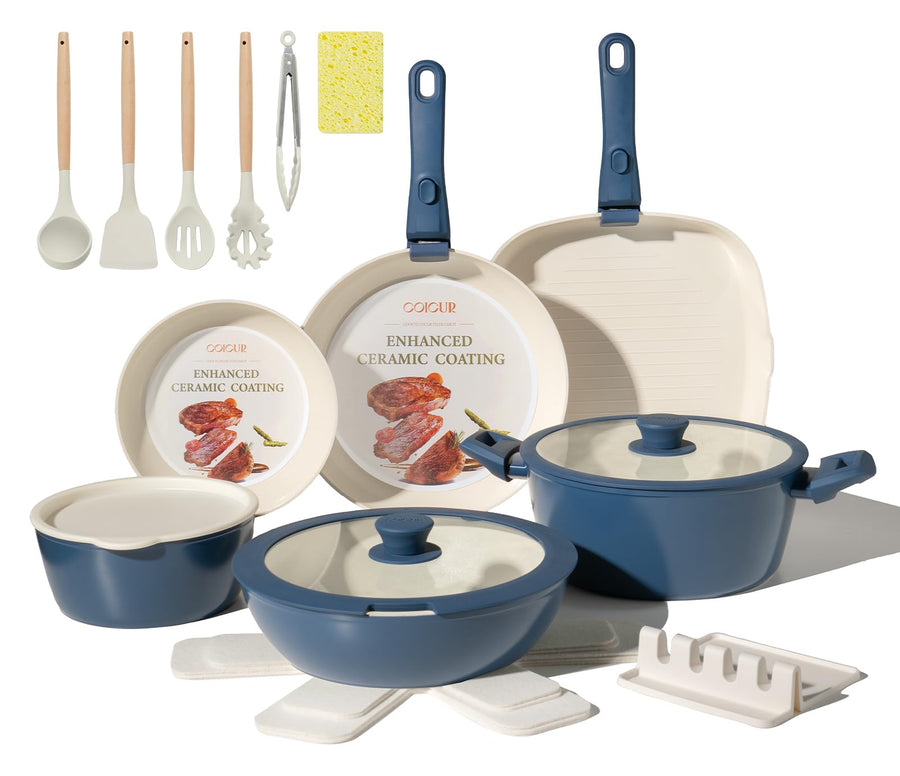 Keramik Topfsets Pfannenset 23 Teilig Antihaft Kochgeschirr mit Abnehmbarem Griff Stapelbar Topfset