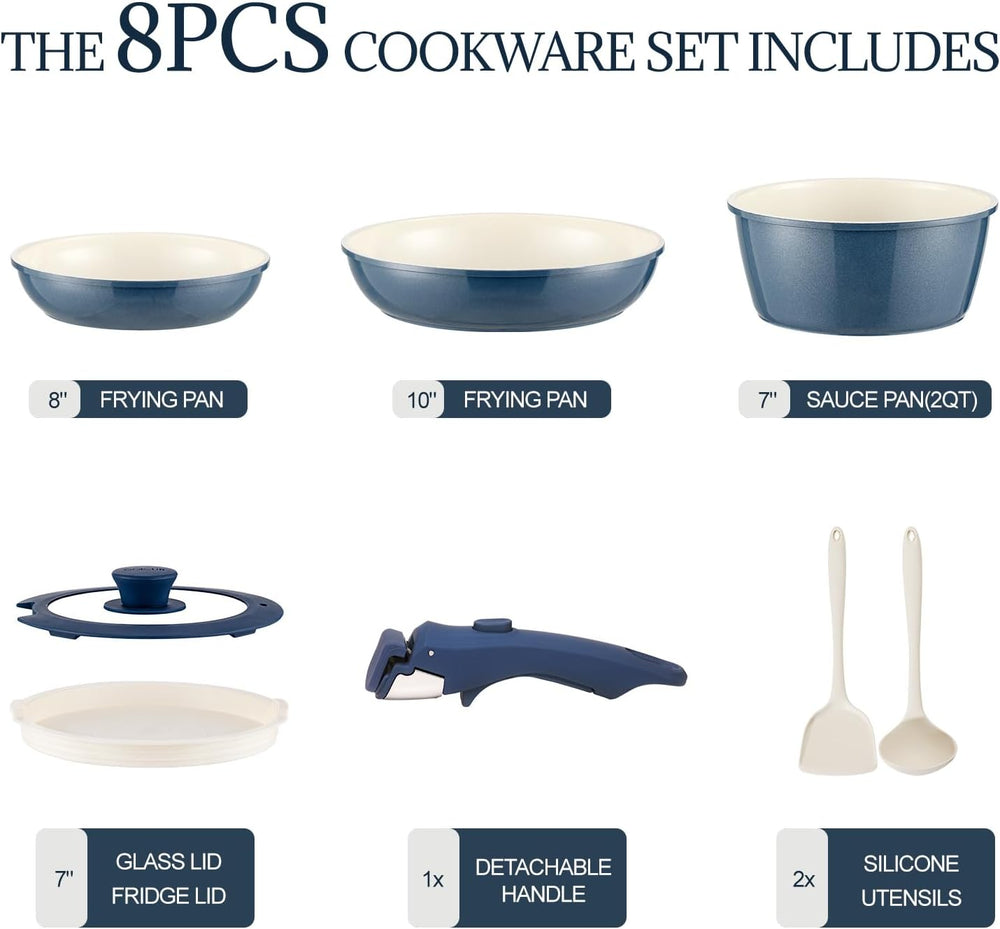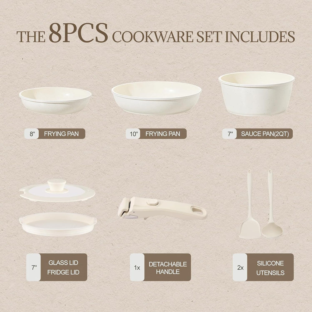 Keramik Topfsets Pfannenset 8 Teilig mit Abnehmbaren Griffen induktionsgeeignet mit Bratpfannen ofen