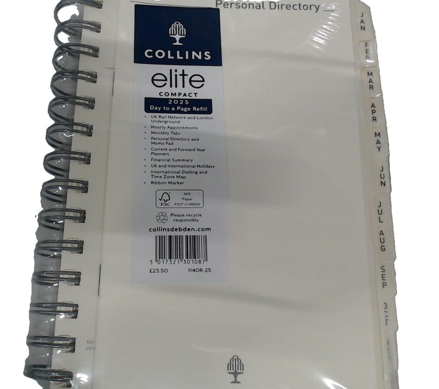 Collins Elite Terminplaner 2024 Compact Day a Page Planner - Terminplaner-Nachfüllung - Geschäftspla