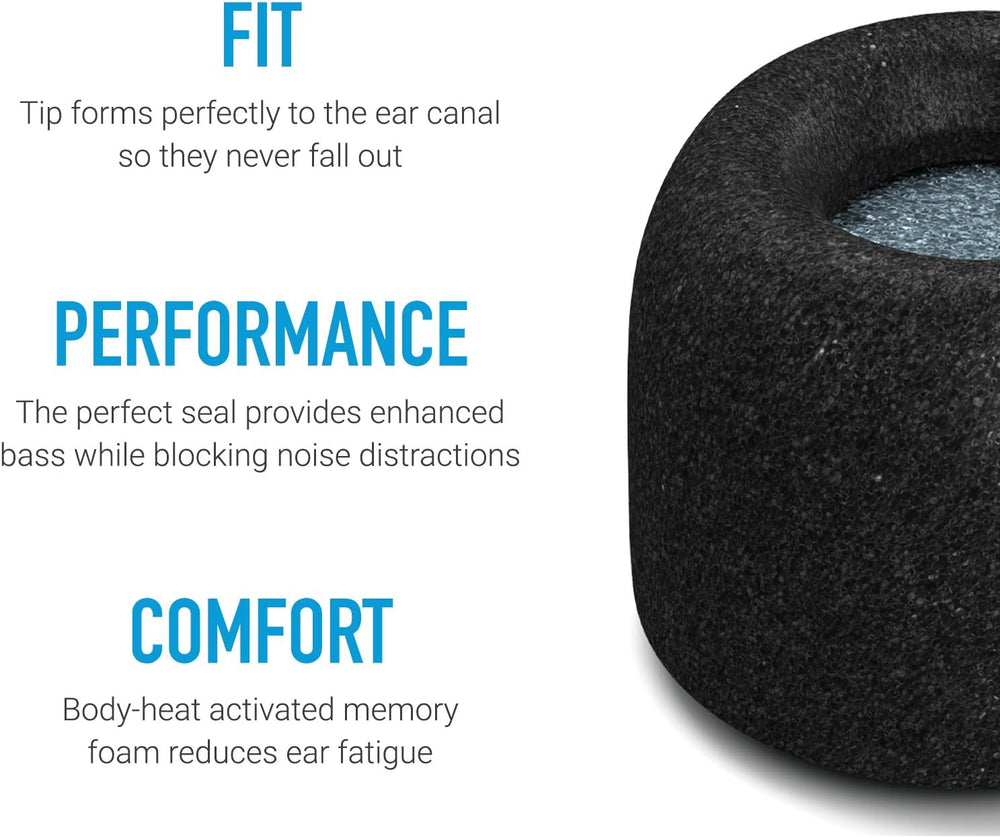 OMPLY Foam 2.0 Earbud Tips for Comfortable, Noise-Canceling Earphones That Click On, and Stay Put (M