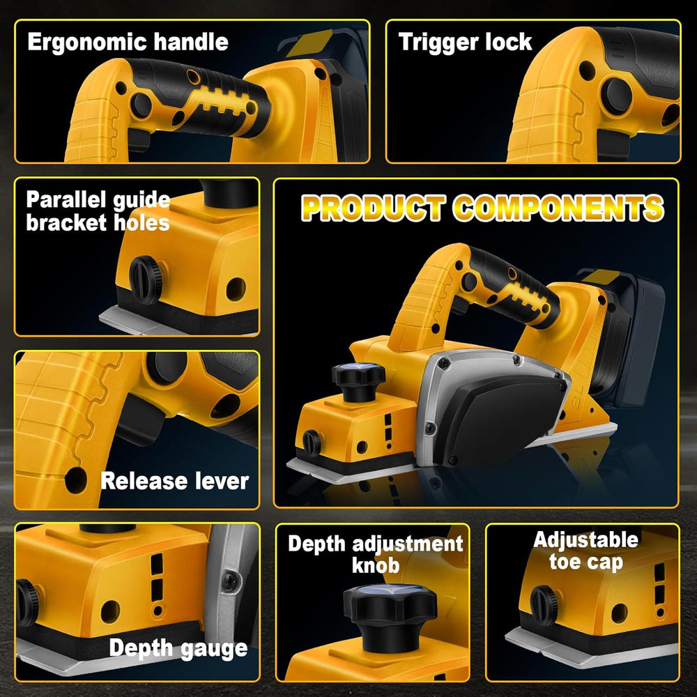 Akku Elektrohobel Holz mit 20V Akku, Bürstenlose Elektrohobel holz Hobelbreite 82mm, Spantiefe 2mm,