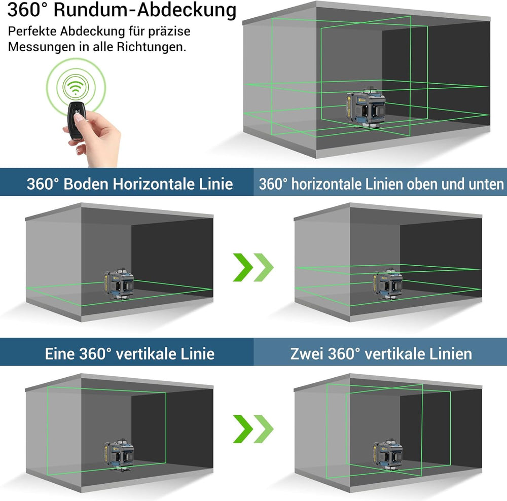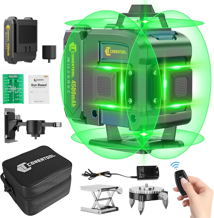 Kreuzlinienlaser Laser Wasserwaage Selbstnivellierend 4D 16-Linien 360 Grad Drehbar CONENTOOL Baulas