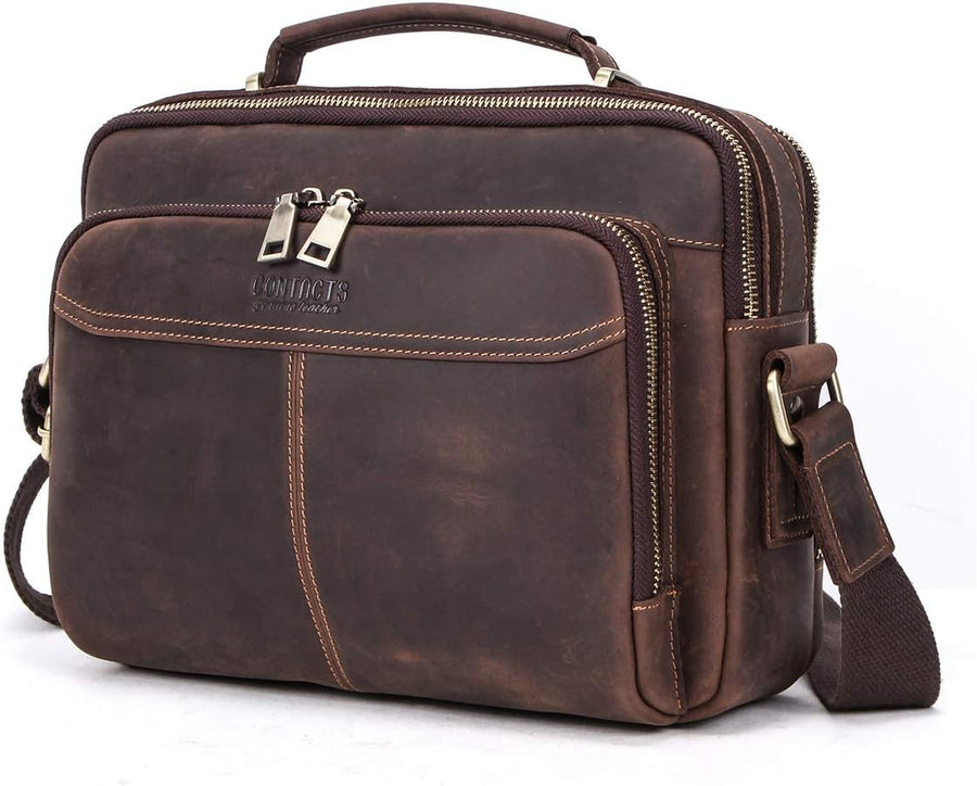 Contacts Echtes Leder Herren 9.7" Laptop Tab Messenger Bag Mini Crossbody Tasche Handtasche Kaffee