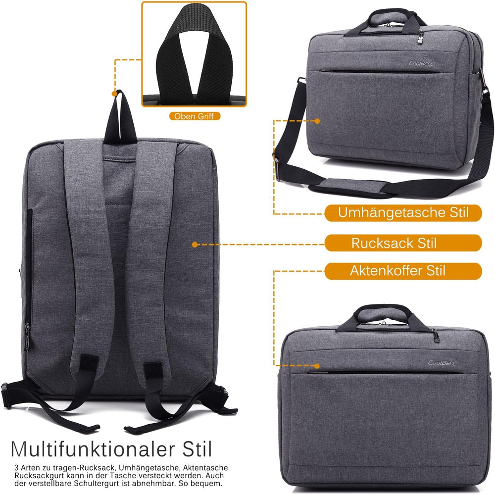 CoolBELL 15.6 Inch umwandelbar Aktentasche Messenger Bag Rucksack Umhängetasche Laptop Tasche Busine