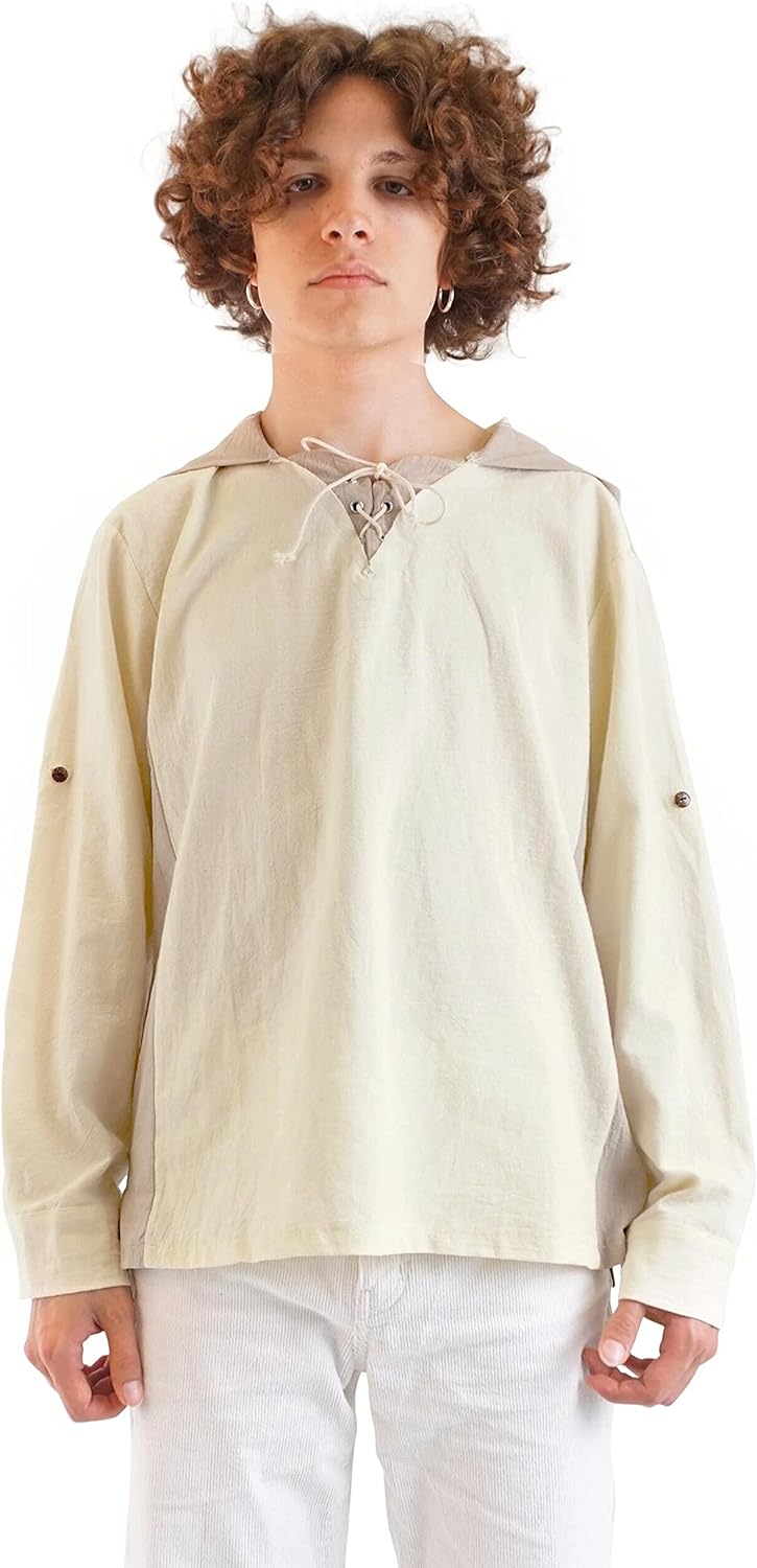 CoolChange Mittelalter Hemd mit Kapuze für LARP, Ritter oder Piraten Kostüm | Beige | Baumwolle | Gr