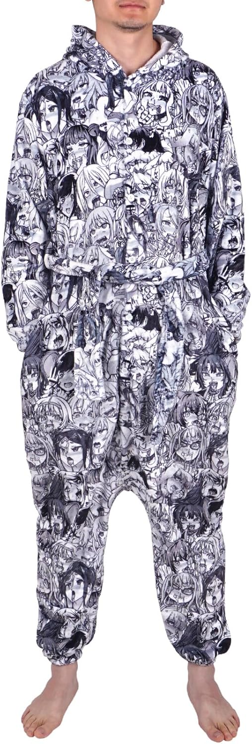 CoolChange Ahegao Kigurumi mit Manga Gesichtern I Anime Pyjama mit Taschen und Kapuze | Grösse: S-XL