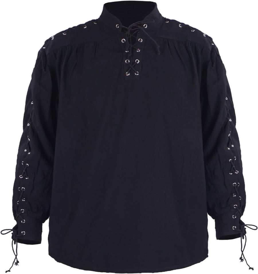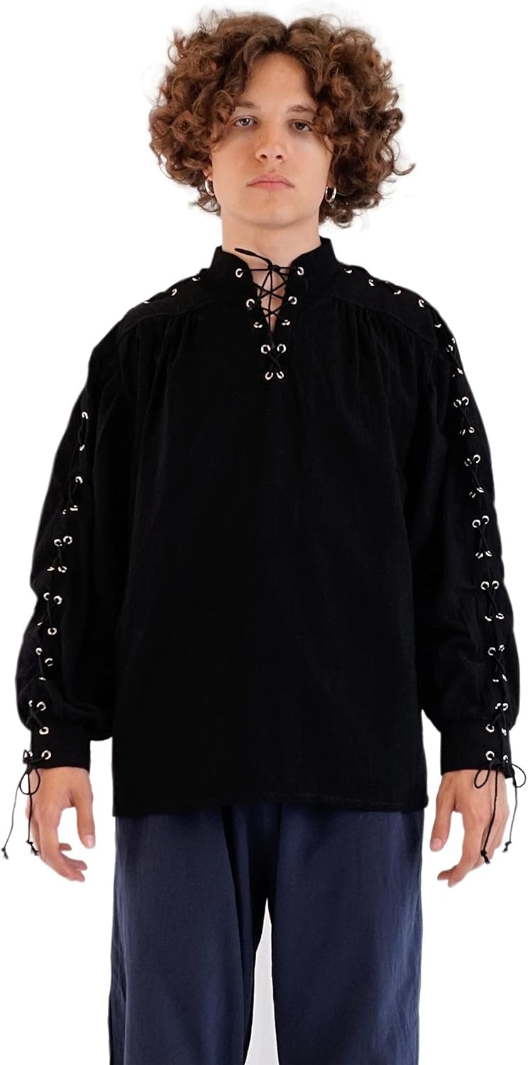 CoolChange Mittelalter Hemd für LARP, Ritter oder Piraten Kostüm | Schwarz | Mit Stehkragen & Schnür