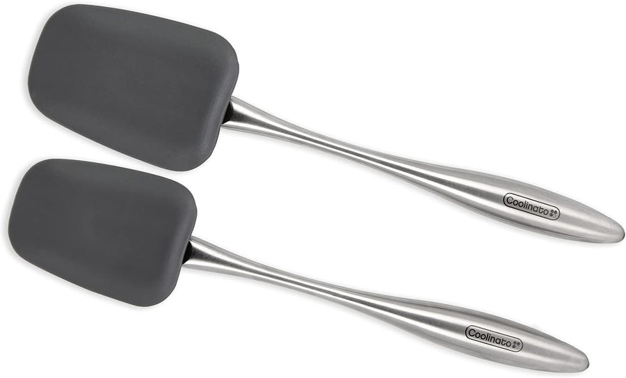 COOLINATO Silikon Edelstahl Kochlöffel 2er Set 25,5cm 29cm, Kochlöffel zum Kochen und Backen, lebens