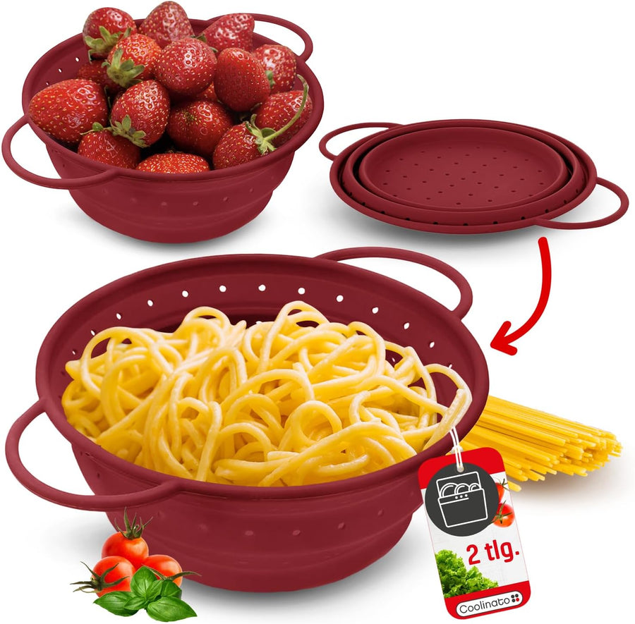 Coolinato Sieb aus Silikon 2er Set, faltbar spülmaschinenfest, Nudelsieb Abtropfsieb Dampfgar Einsat